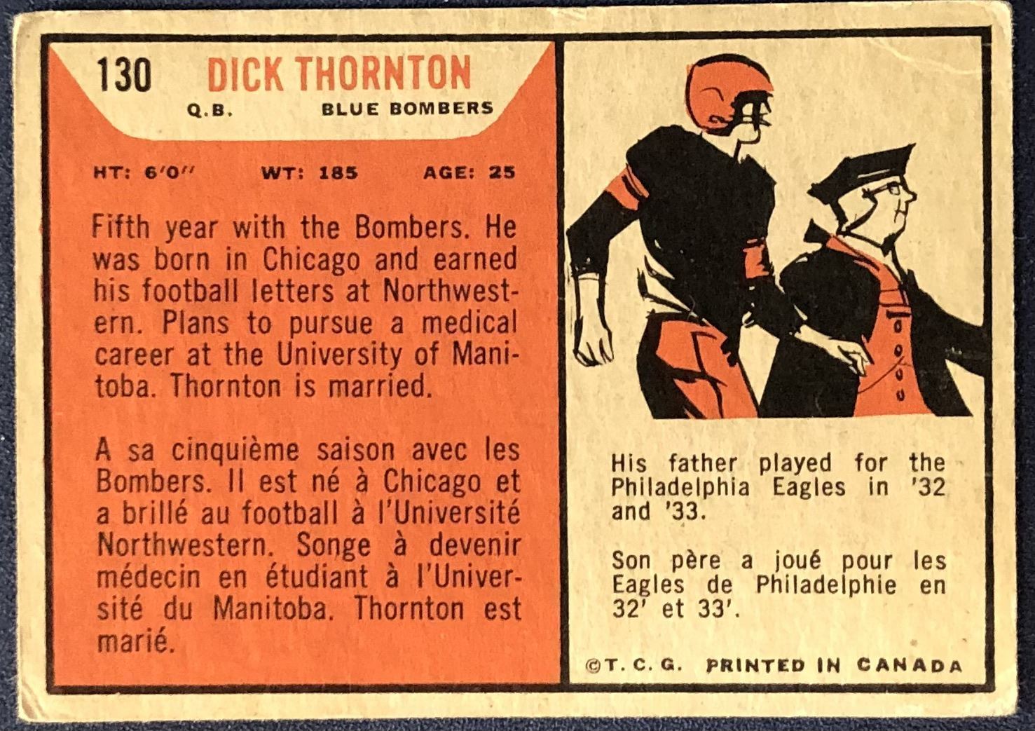 Lot 366 1965 O-PEE-CHEE CFL DICK THORNTON (HOF)