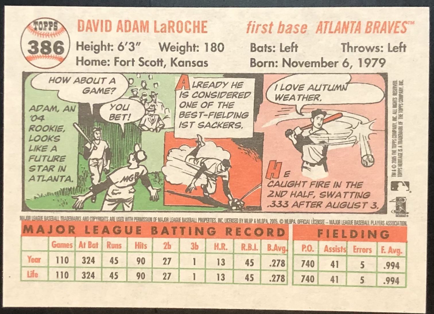 Lot 381 2005 TOPPS HERITAGE ADAM LAROCHE ROOKIE CARD