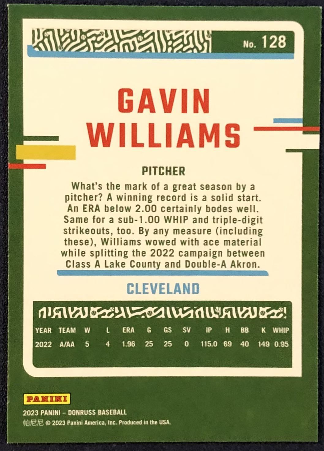 Lot 406 2023 DONRUSS GAVIN WILLIAMS ROOKIE CARD