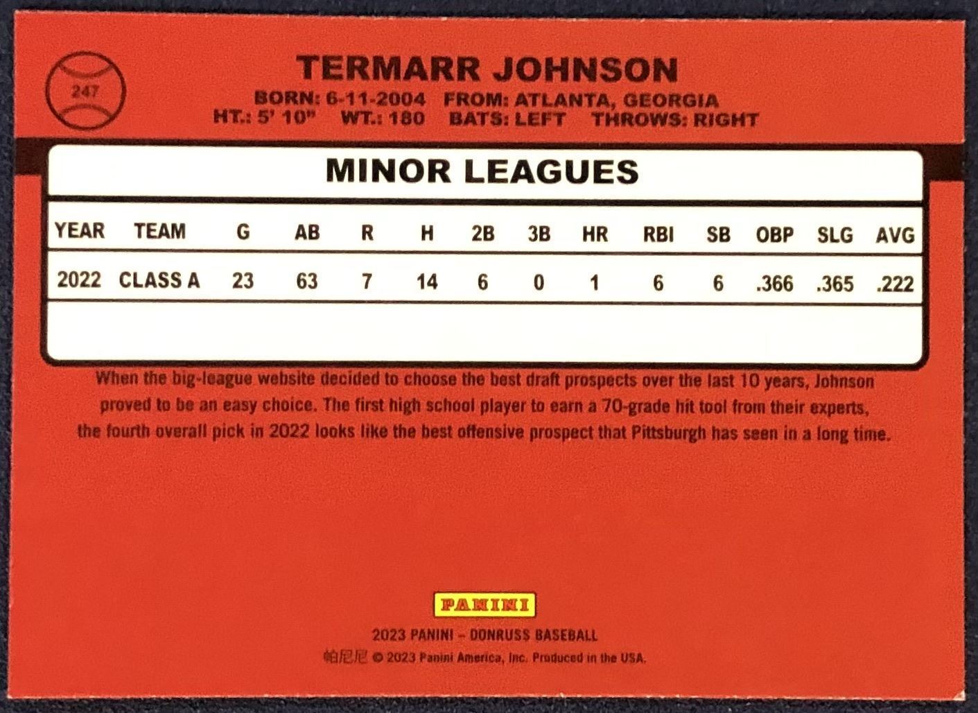 Lot 417 2023 DONRUSS TERMARR JOHNSON ROOKIE CARD