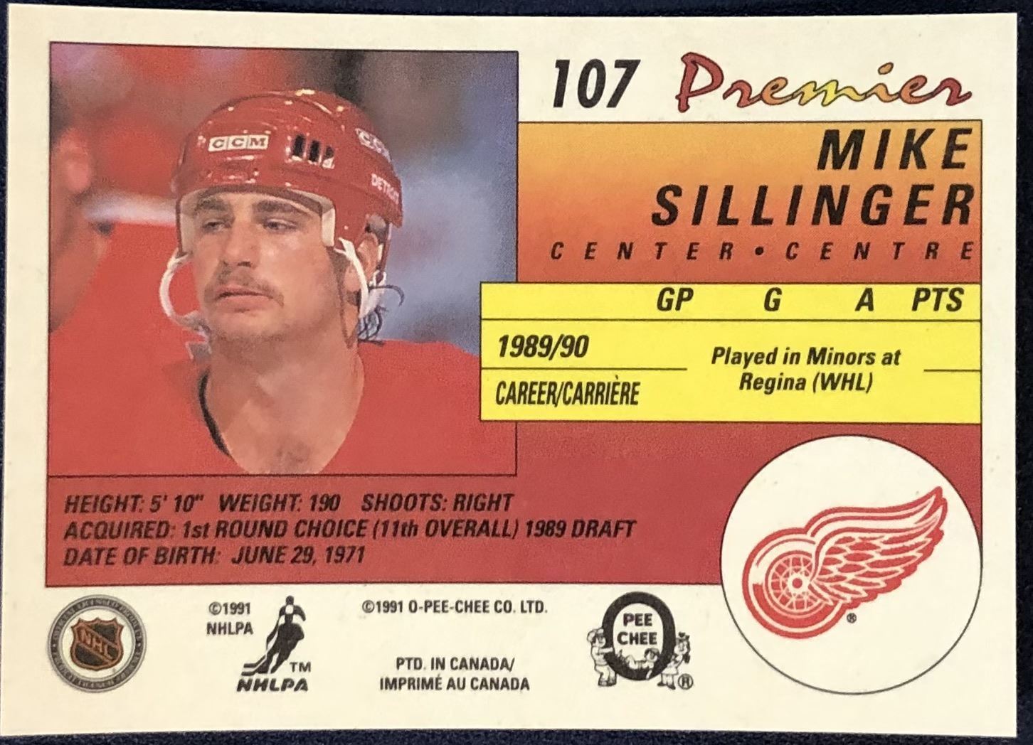 Lot 451 1990-91 O-PEE-CHEE PREMIER MIKE SILLINGER ROOKIE CARD