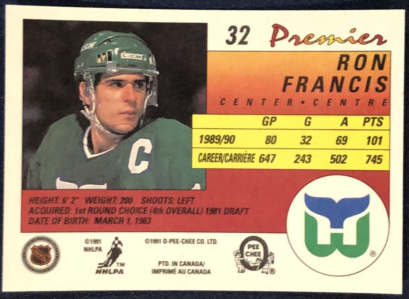 Lot 457 1990-91 O-PEE-CHEE PREMIER RON FRANCIS (HOF)