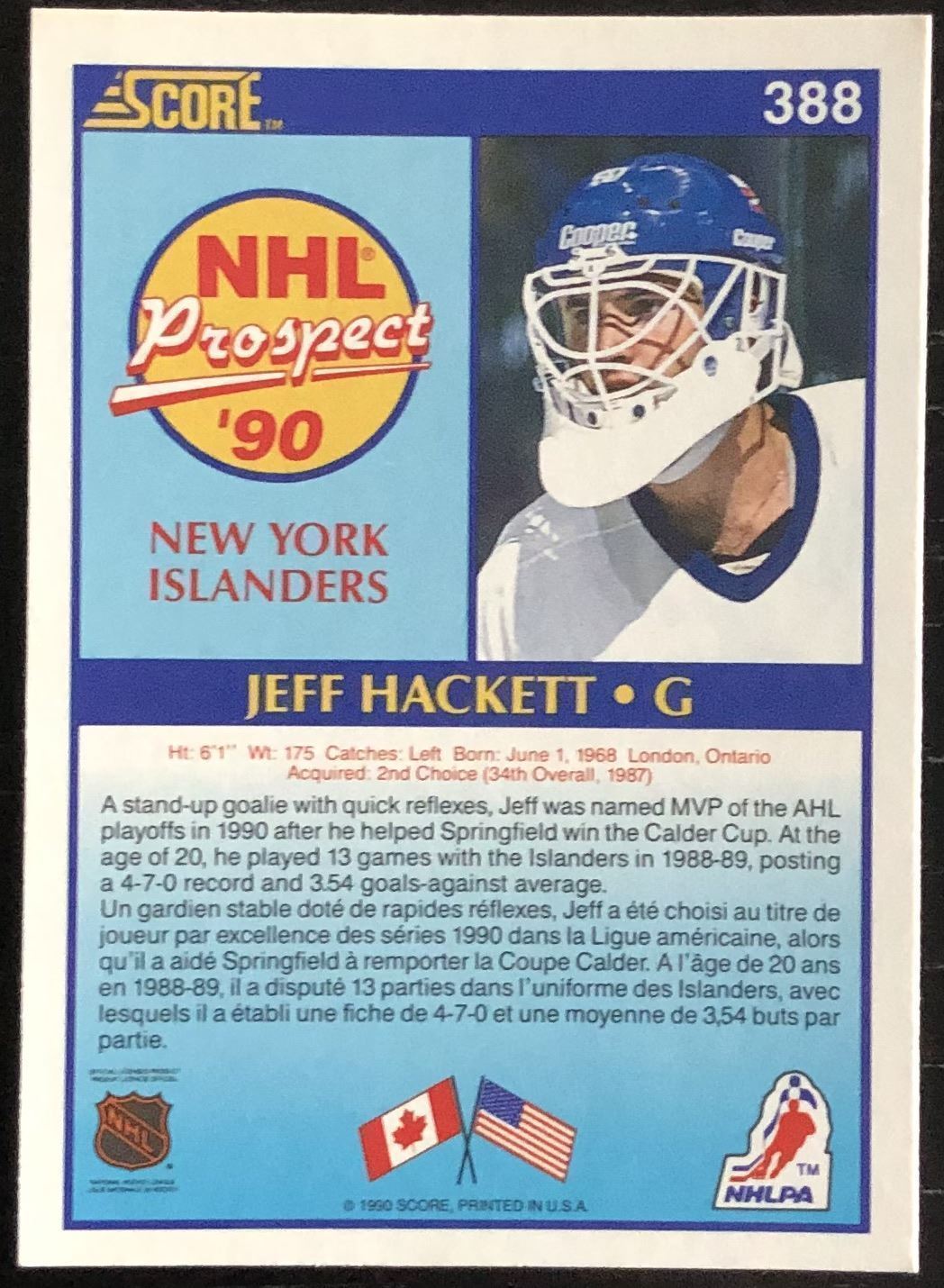 Lot 466 1990-91 SCORE JEFF HACKETT ROOKIE CARD