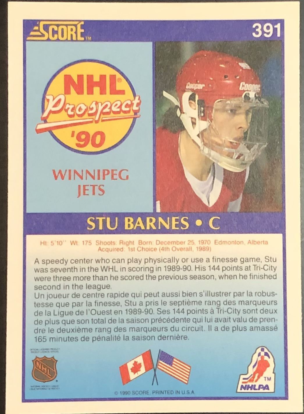 Lot 467 1990-91 SCORE STU BARNES ROOKIE CARD