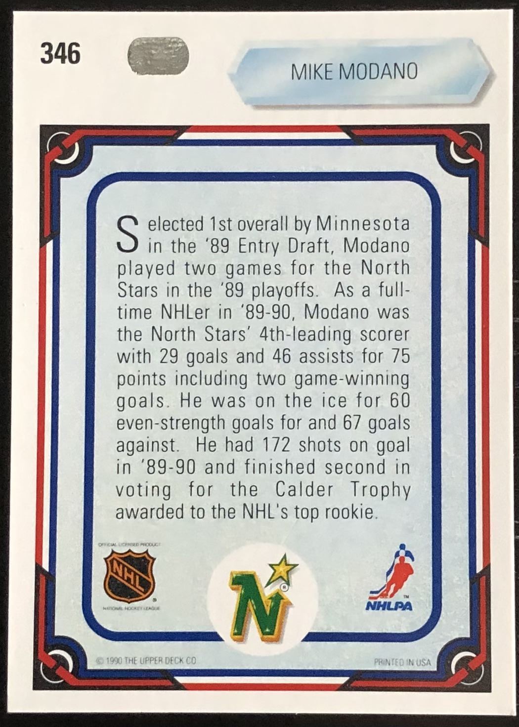 Lot 468 1990-91 UPPER DECK MIKE MODANO (HOF) ROOKIE CARD