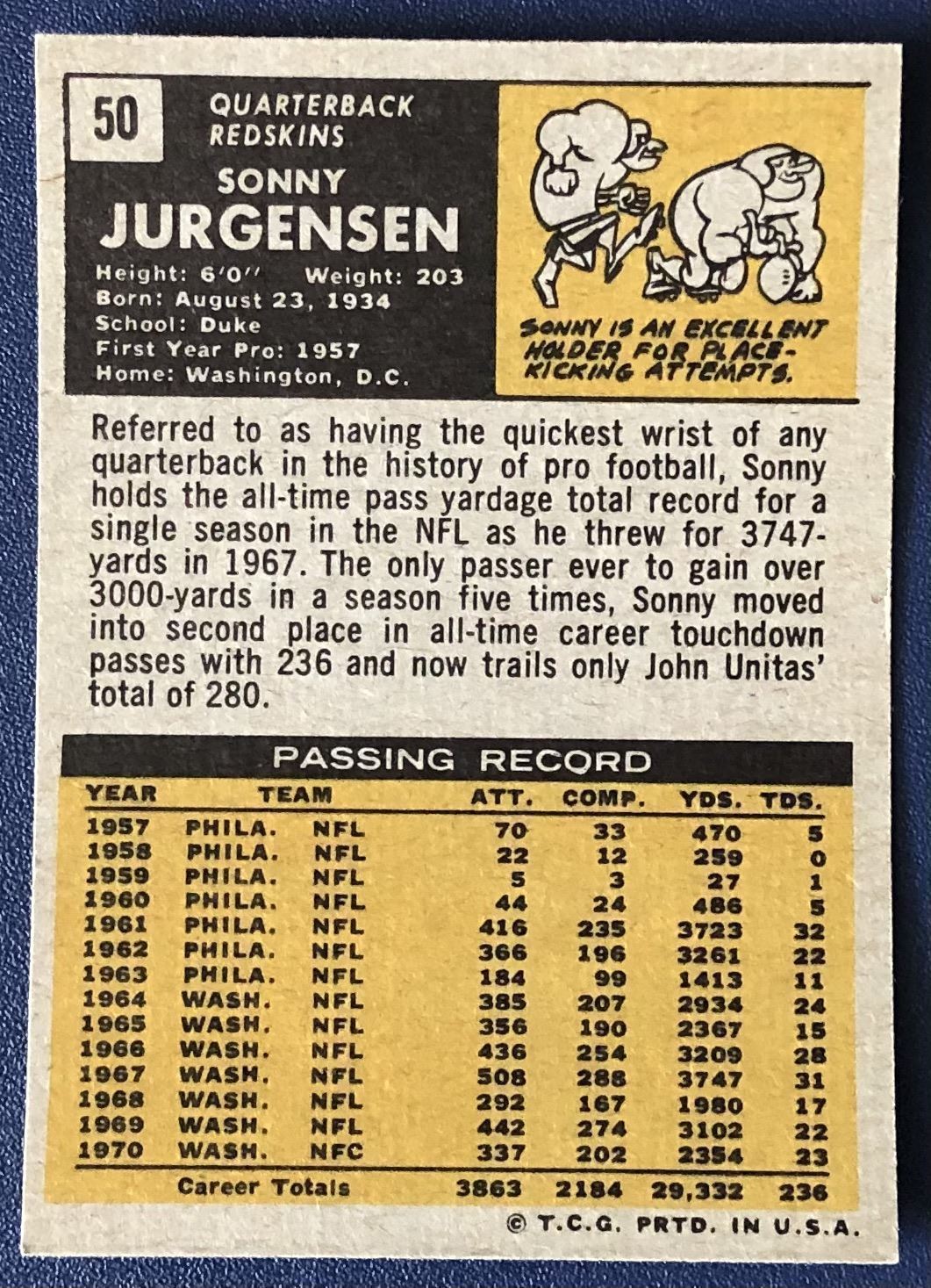 Lot 518 1971 TOPPS SONNY JURGENSEN (HOF)