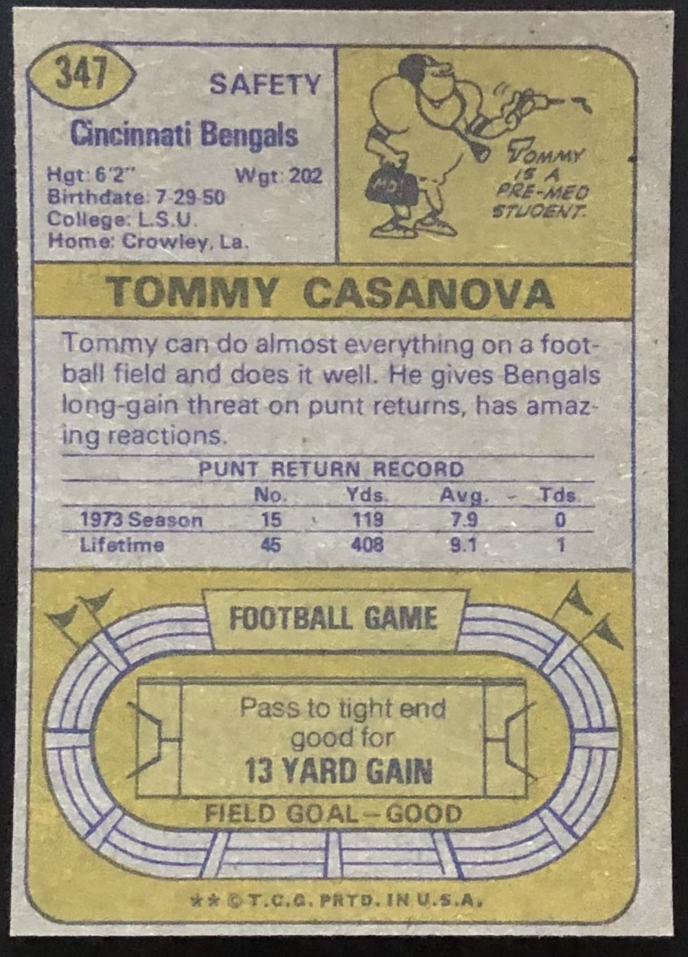 Lot 522 1974 TOPPS TOMMY CASANOVA