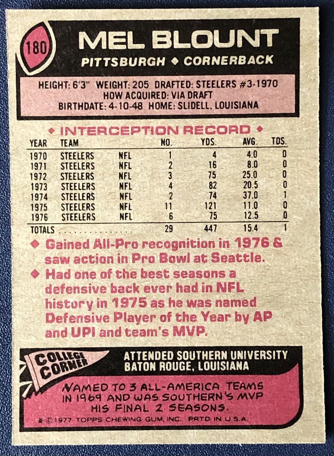 Lot 528 1977 TOPPS MEL BLOUNT (HOF)