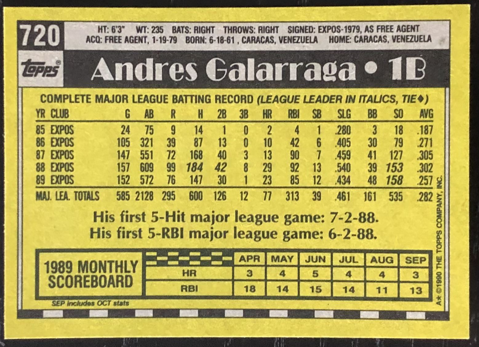 Lot 557 1990 TOPPS ANDRES GALARRAGA