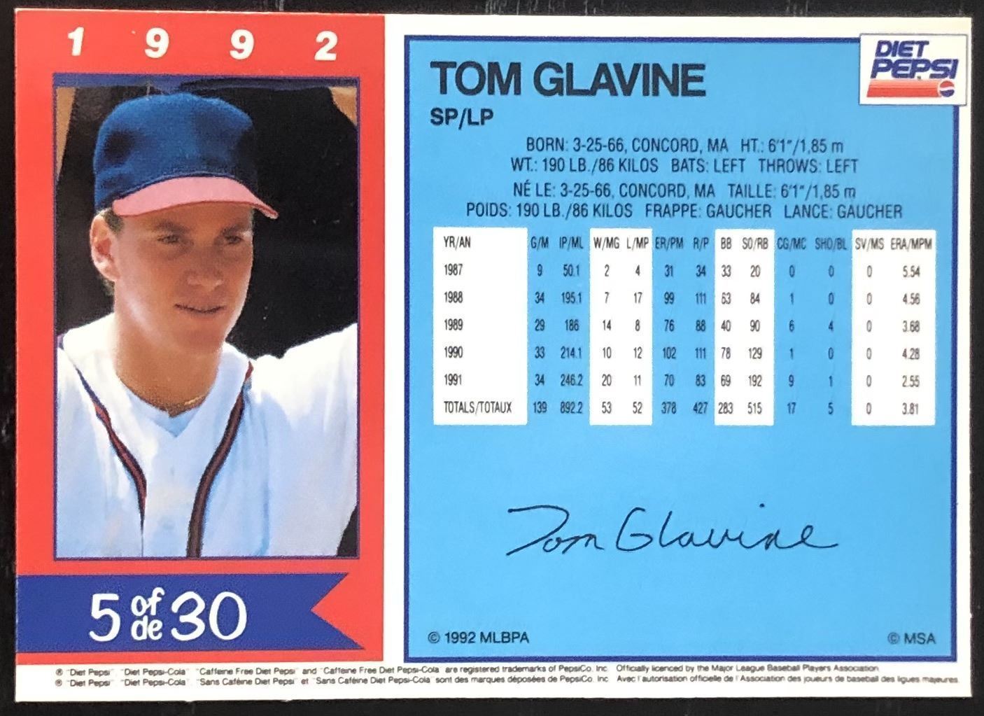 Lot 578 1992 DIET PEPSI TOM GLAVINE (HOF)
