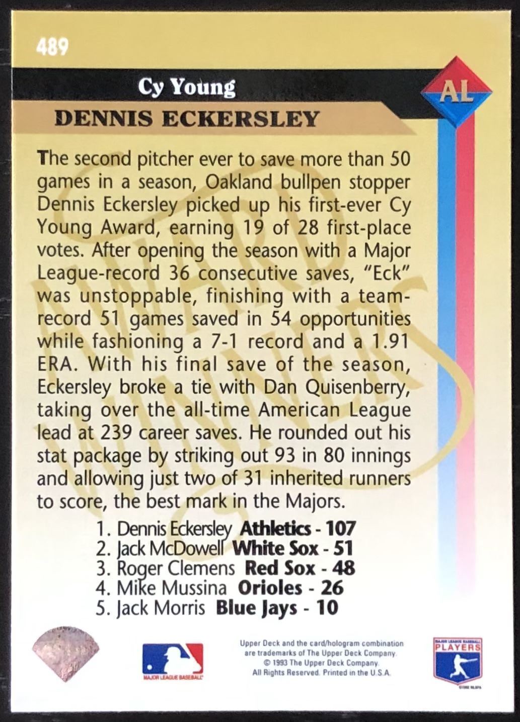 Lot 593 1993 UPPER DECK DENNIS ECKERSLEY (HOF)