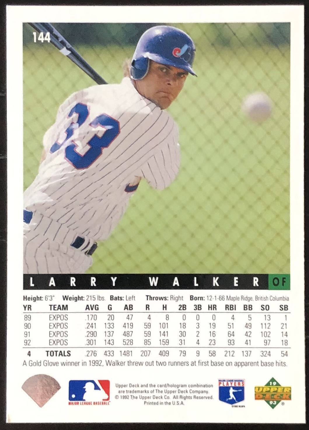 Lot 597 1993 UPPER DECK LARRY WALKER (HOF)