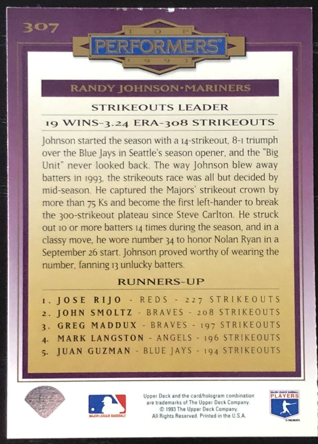 Lot 599 1993 UPPER DECK RANDY JOHNSON (HOF)