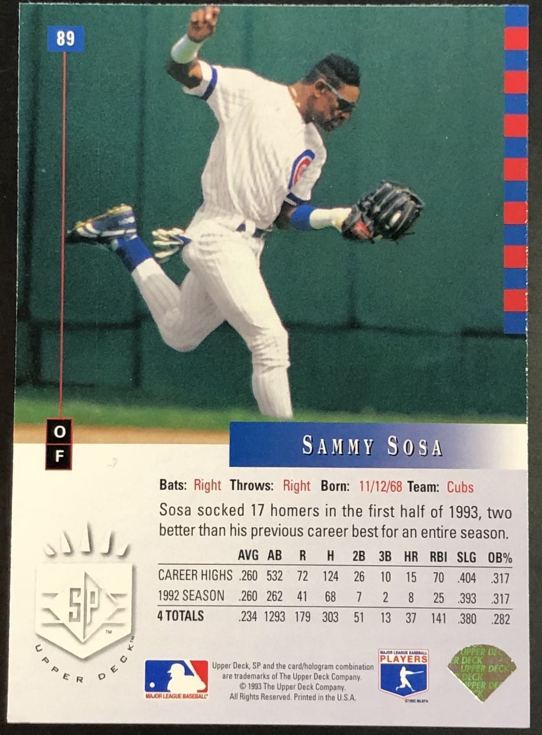Lot 601 1993 UPPER DECK SP SAMMY SOSA