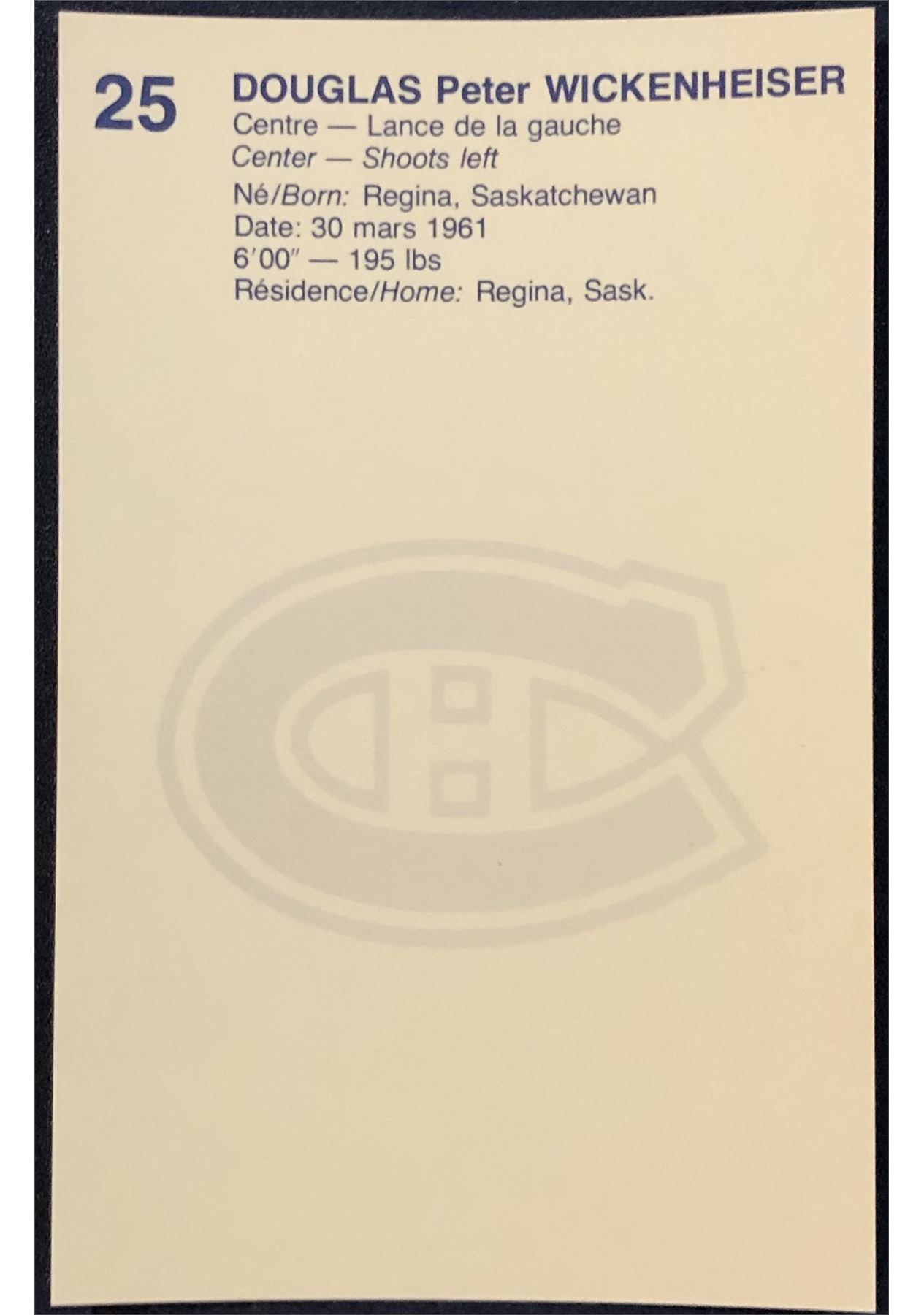 1981-82 MONTREAL CANADIENS POST CARDS - DOUG WICKENHEISER
