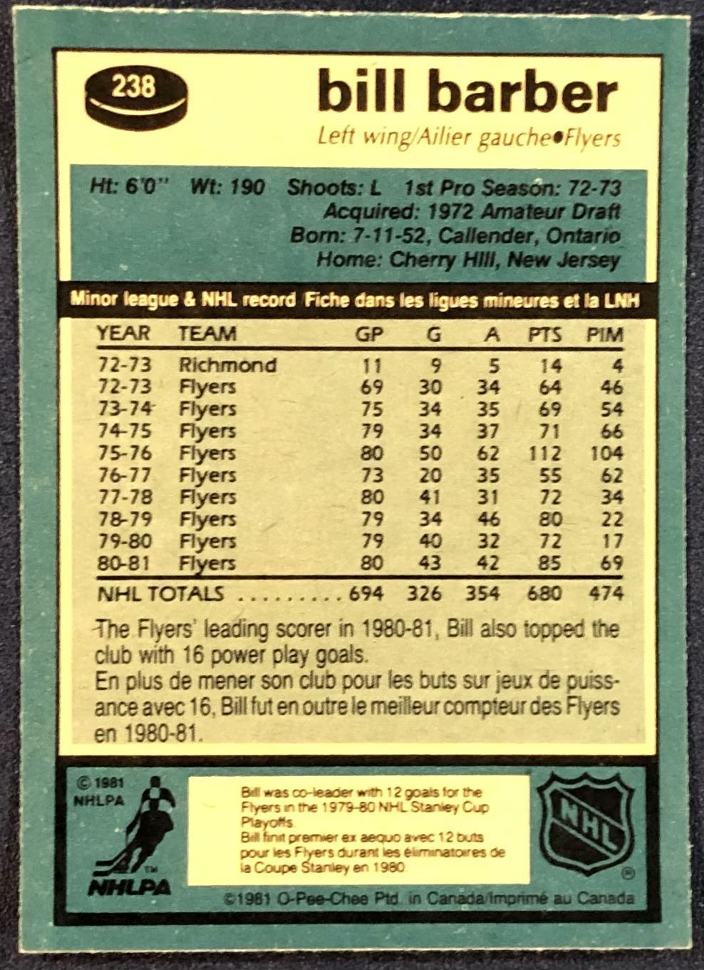 Lot 627 1981-82 O-PEE-CHEE BILL BARBER (HOF)