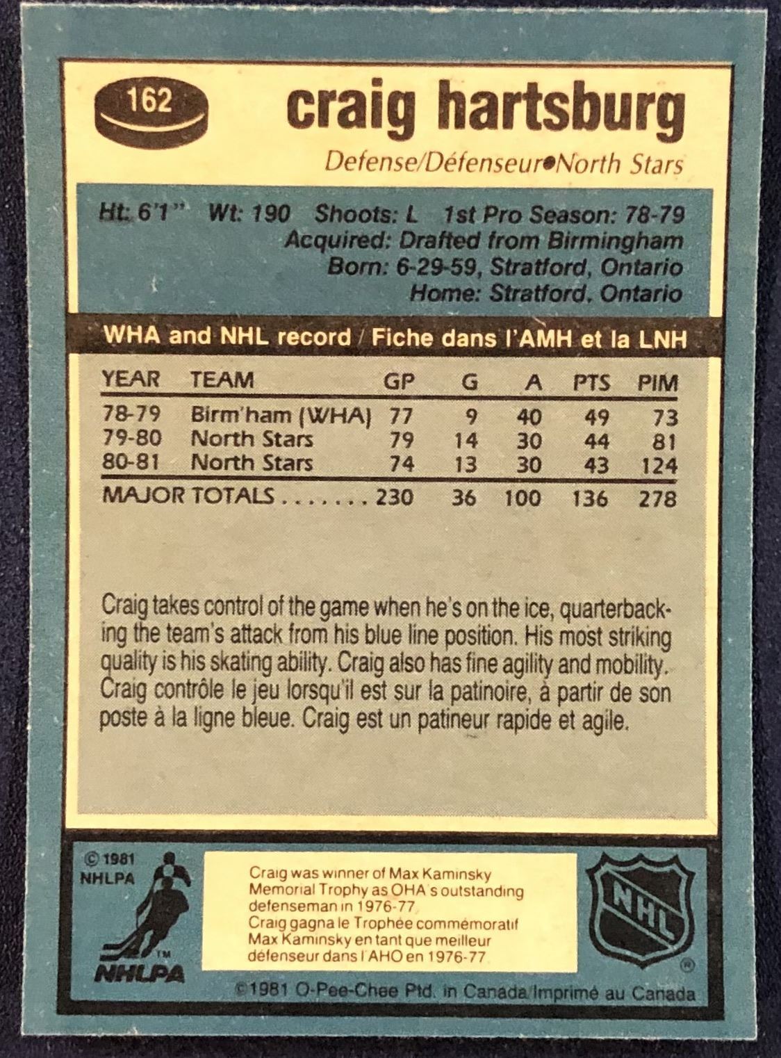 Lot 628 1981-82 O-PEE-CHEE CRAIG HARTSBURG