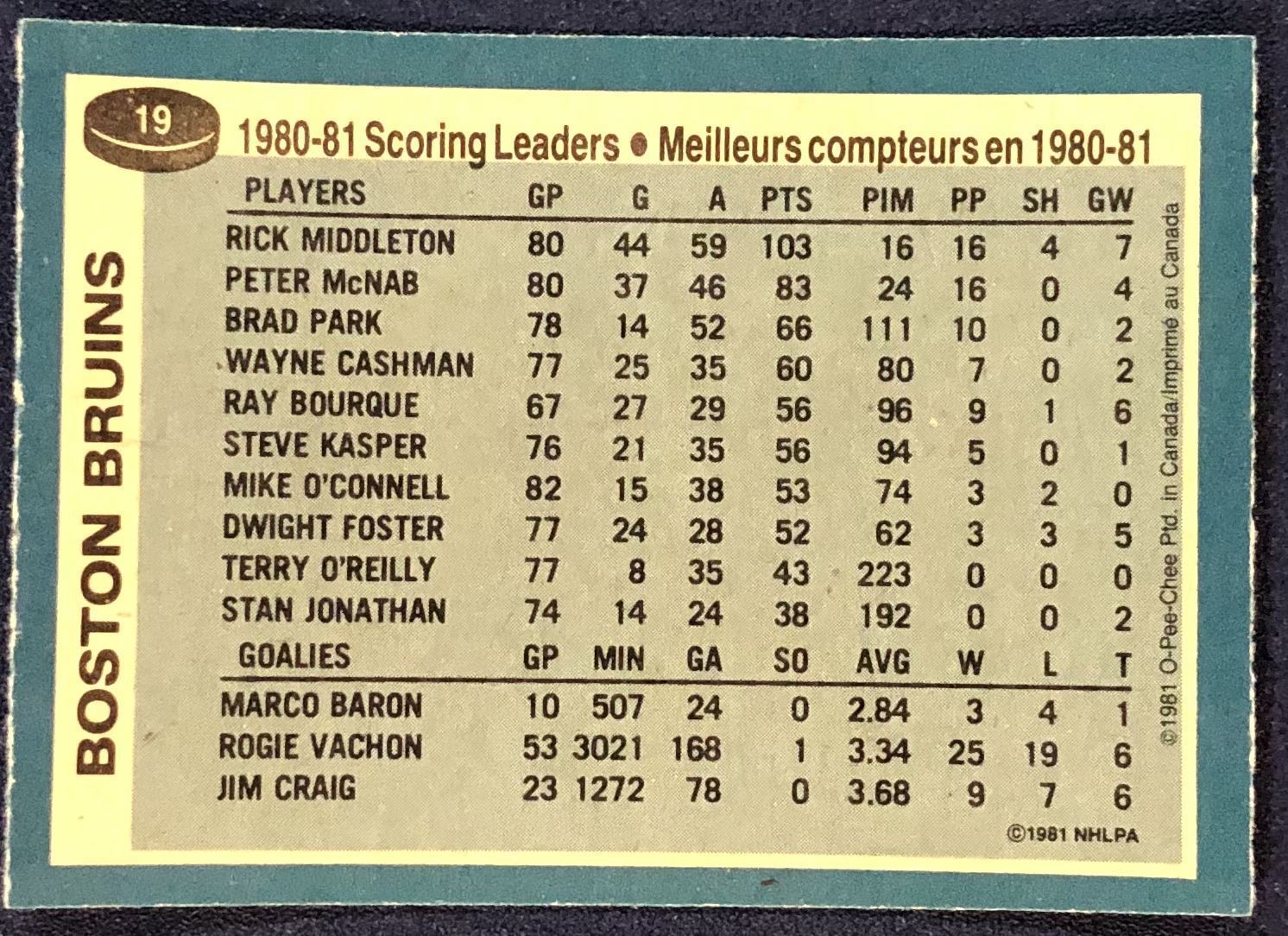 Card #19 NHL, hockey, OPC, vintage, hall of fame