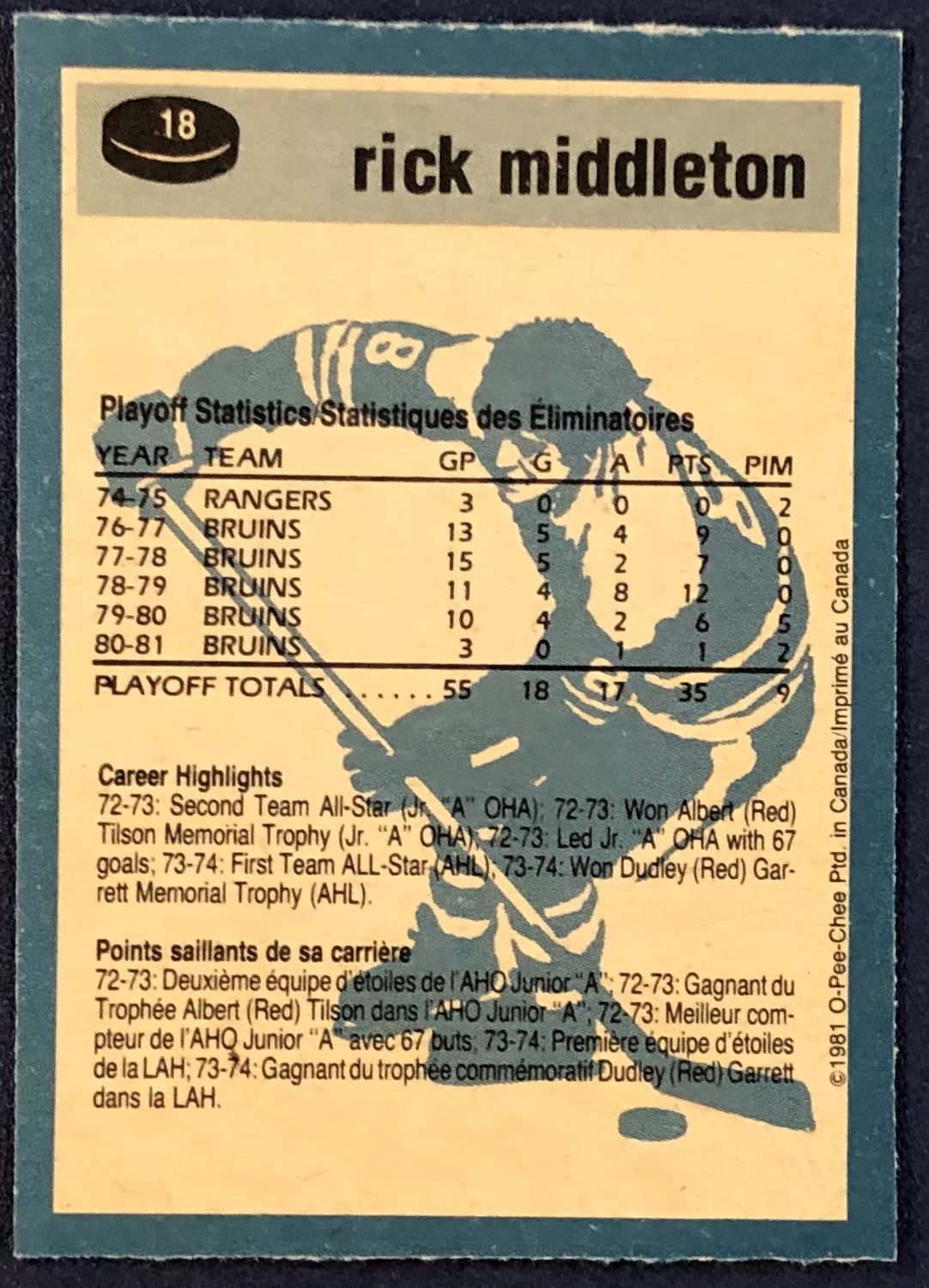 Card #18 NHL, hockey, OPC, vintage, hall of fame