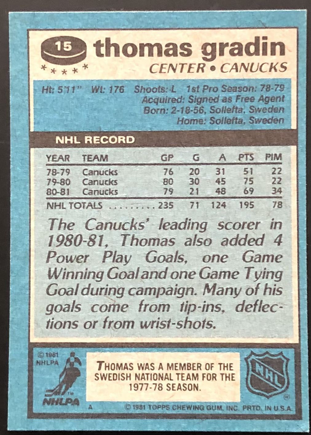 Lot 656 1981-82 TOPPS THOMAS GRADIN
