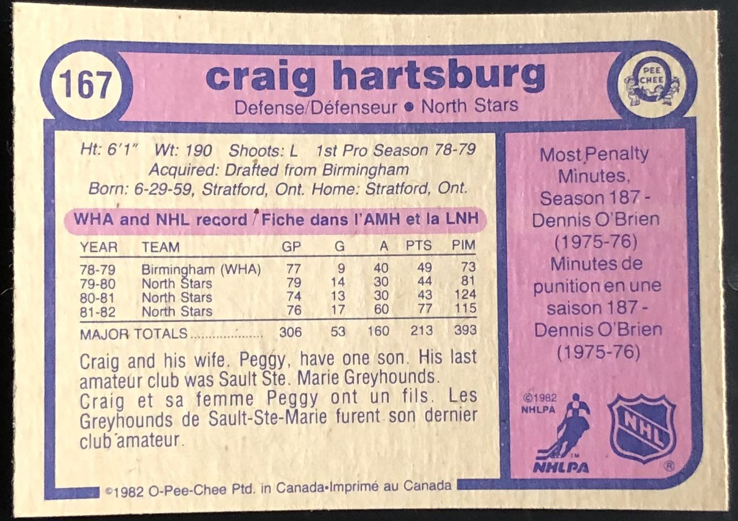 Lot 659 1982-83 O-PEE-CHEE CRAIG HARTSBURG