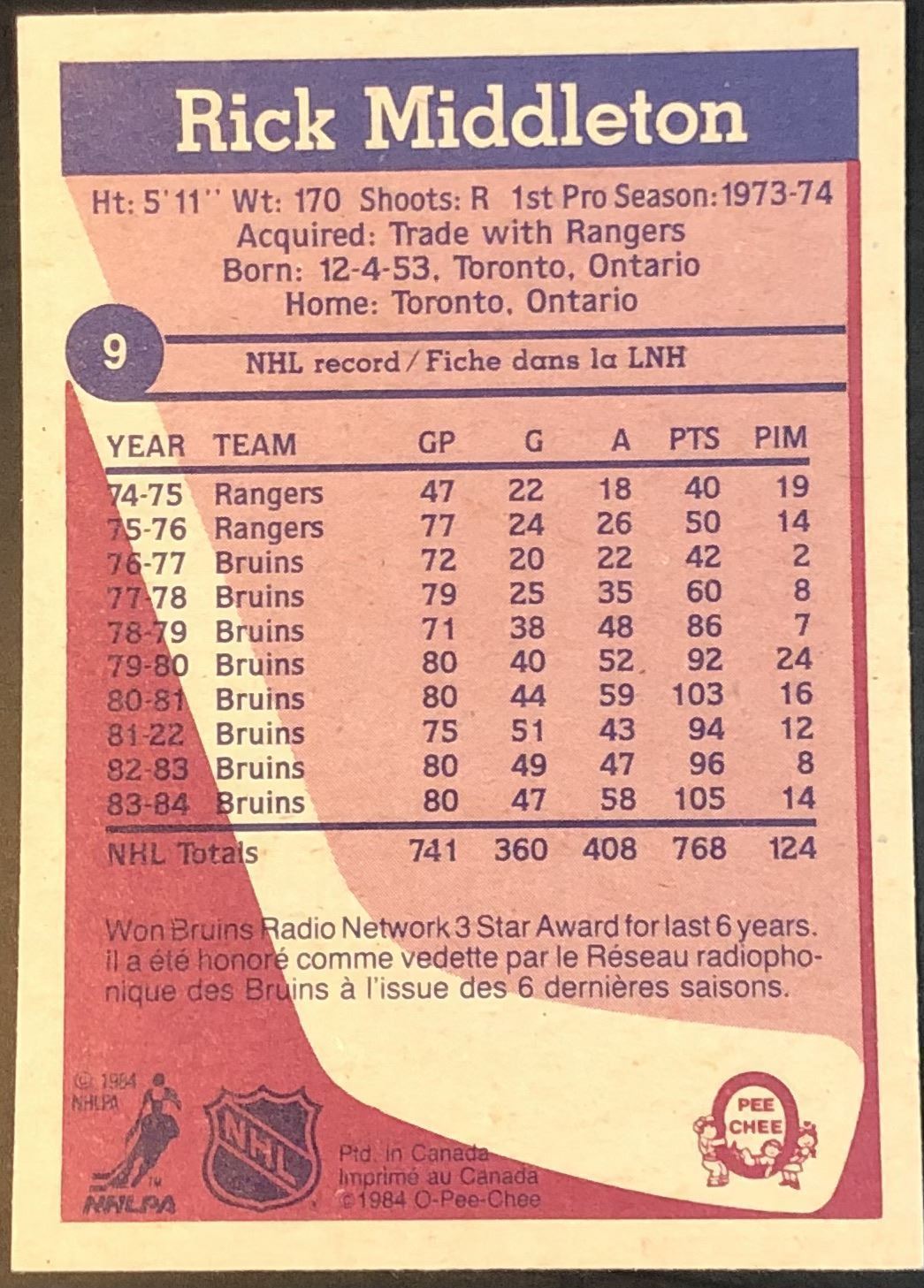 Lot 664 1984-85 O-PEE-CHEE RICK MIDDLETON (HOF)