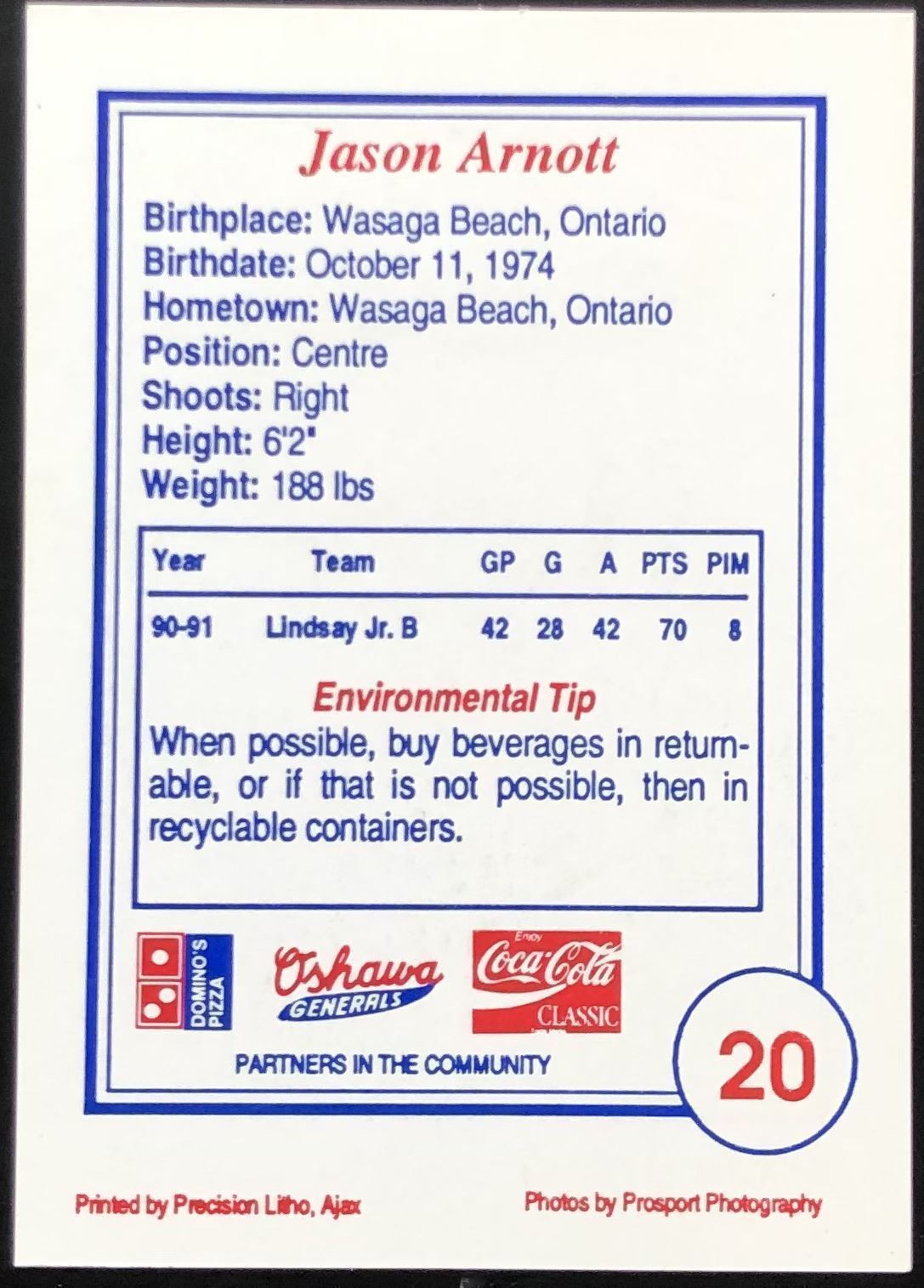 Lot 823 1991-92 JASON ARNOTT JR. CARD