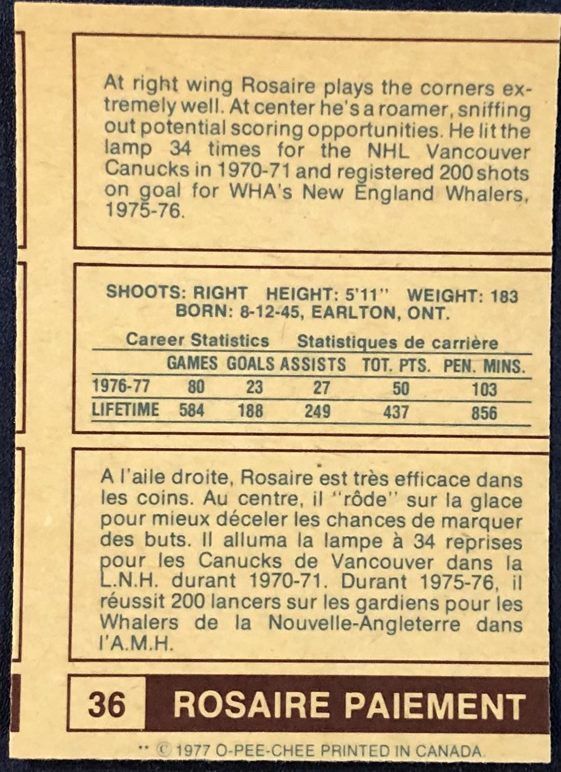 Lot 879 1977-78 O-PEE-CHEE WHA ROSAIRE PAIEMENT