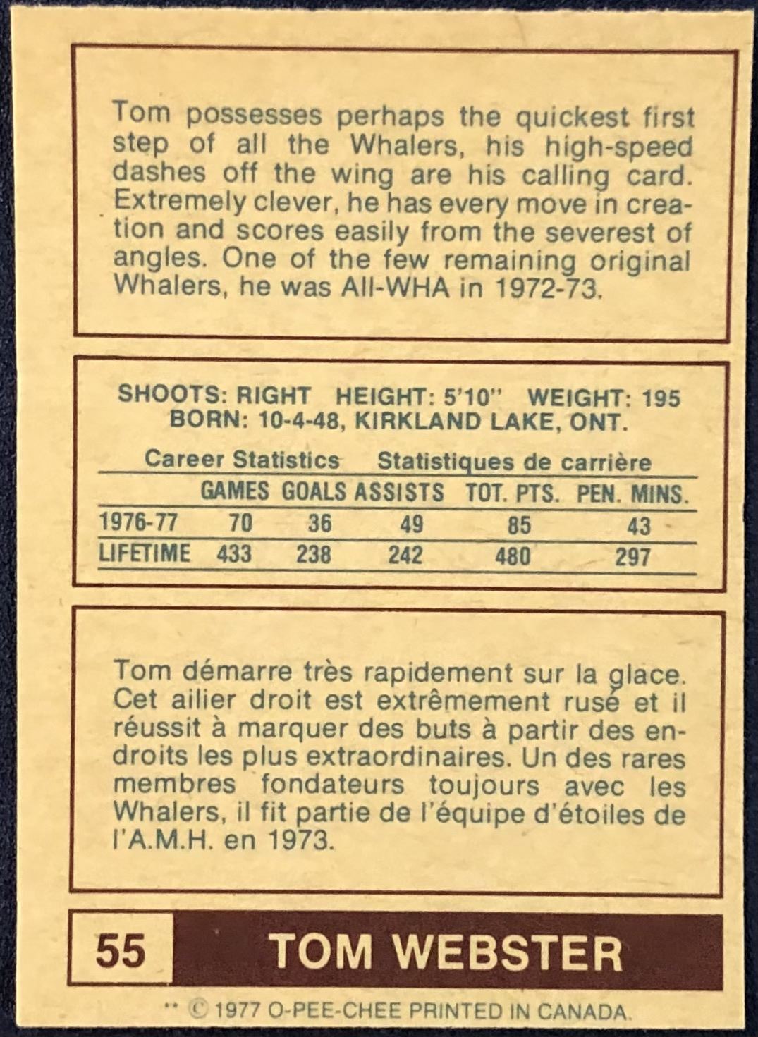 Lot 882 1977-78 O-PEE-CHEE WHA TOM WEBSTER