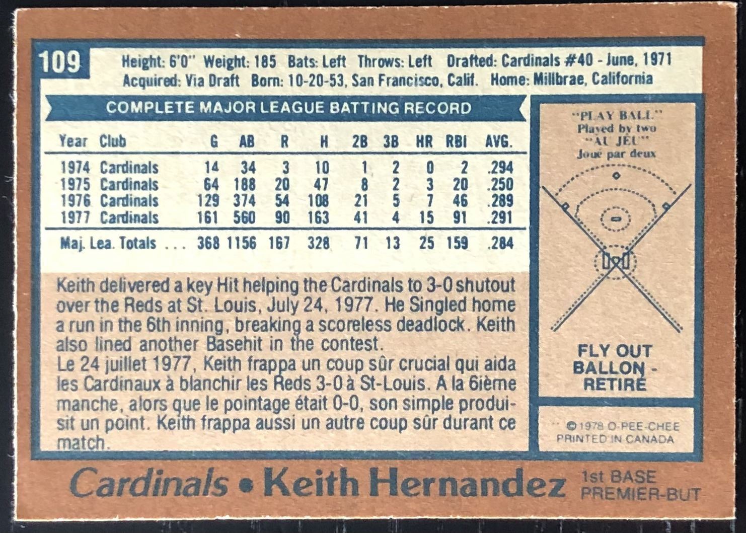 Lot 914 1978 O-PEE-CHEE KEITH HERNANDEZ (HOF)