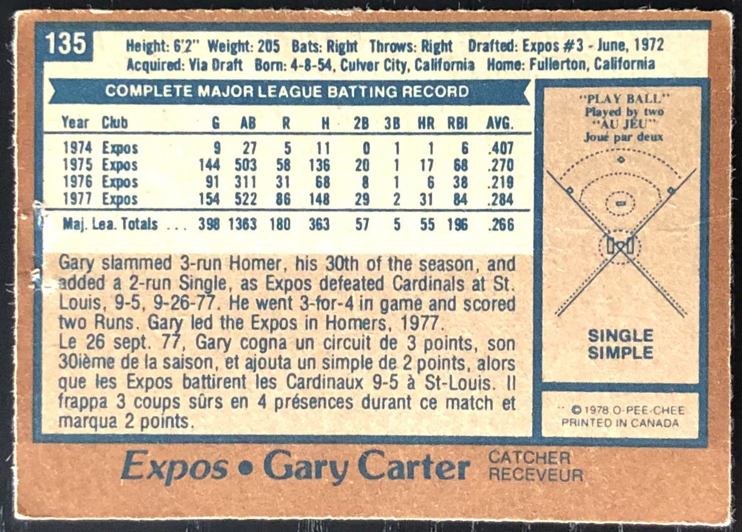 Lot 916 1978 O-PEE-CHEE GARY CARTER (HOF)