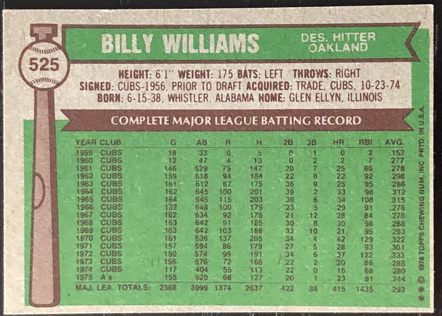 Lot 929 1976 TOPPS BILLY WILLIAMS (HOF)