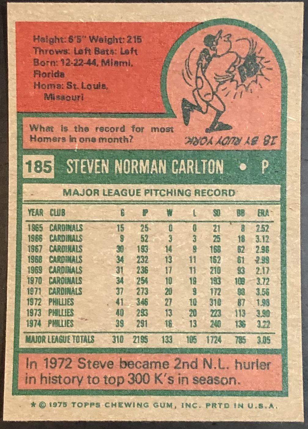 Lot 933 1975 TOPPS MINI STEVE CARLTON (HOF)