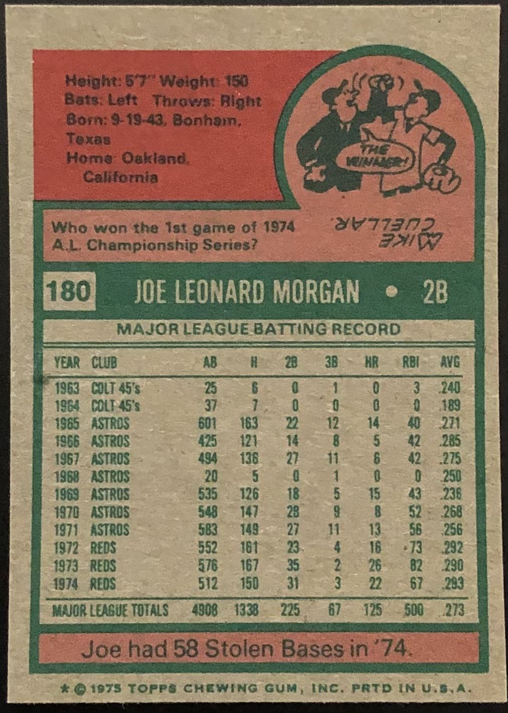 Lot 940 1975 TOPPS MINI JOE MORGAN (HOF)