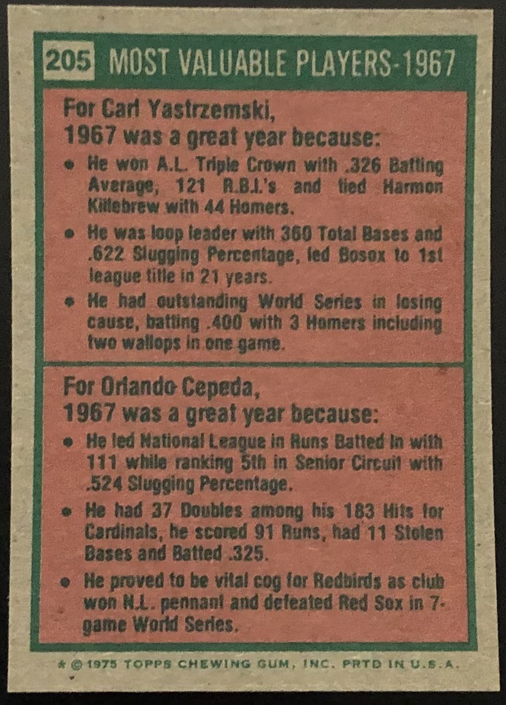 Card #205 MLB, baseball, vintage, hall of fame