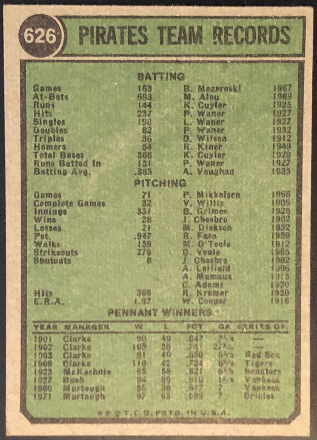 Lot 951 1974 TOPPS PITTSBURGH PIRATES