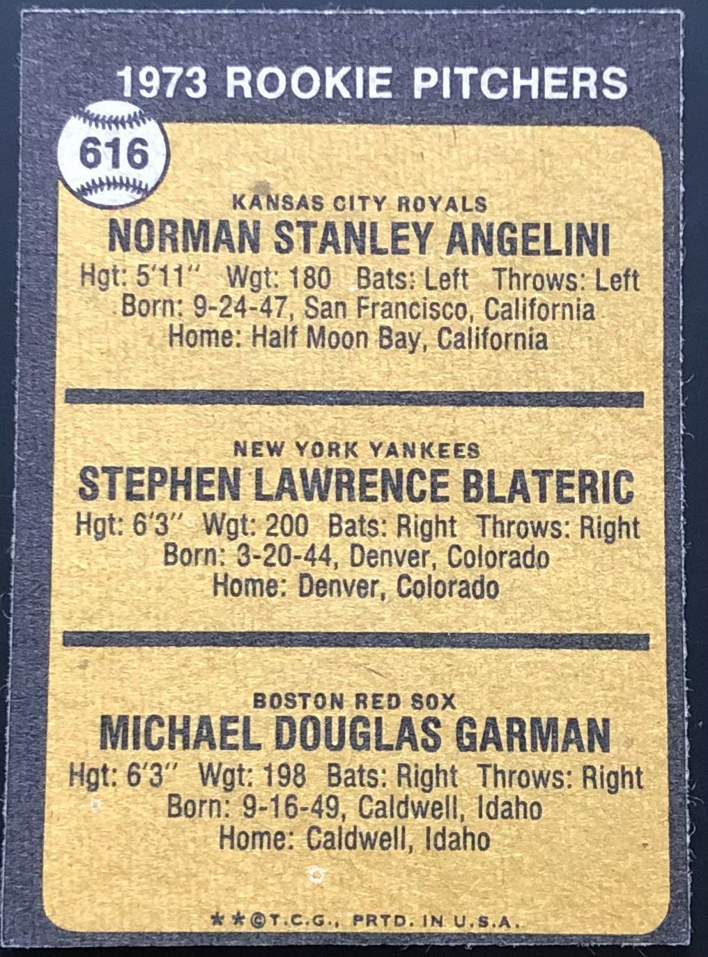 Lot 954 1973 TOPPS HIGH NUMBERS - MIKE GARMAN ROOKIE CARD