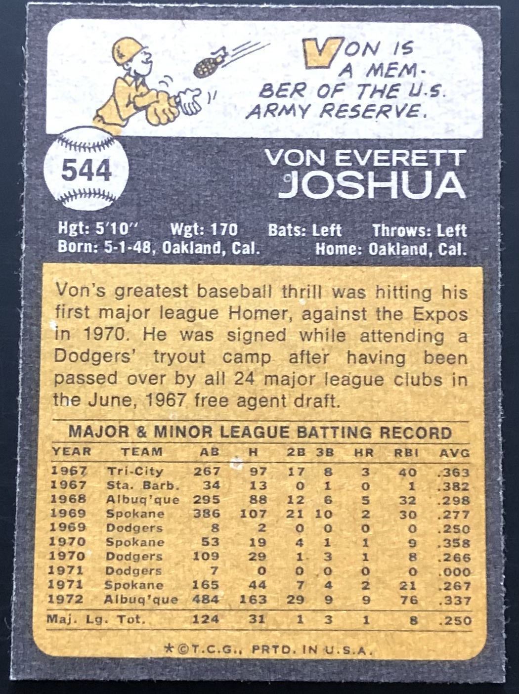 Lot 957 1973 TOPPS HIGH NUMBERS - VON JOSHUA