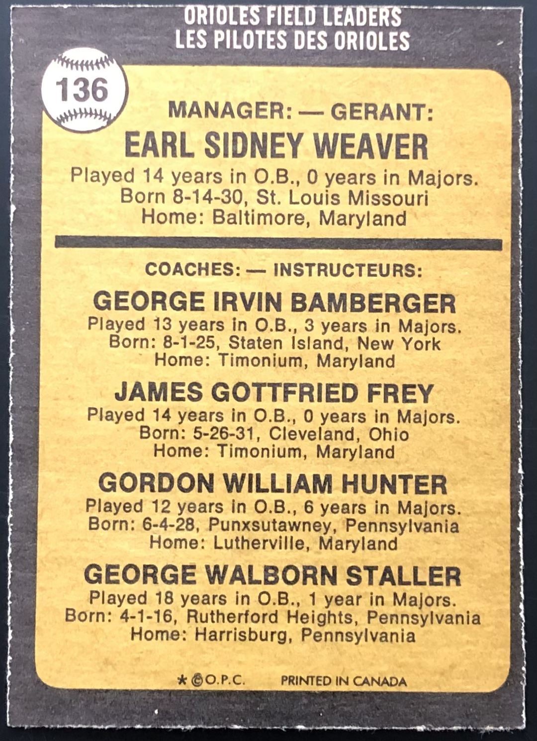 Lot 959 1973 O-PEE-CHEE EARL WEAVER (HOF)