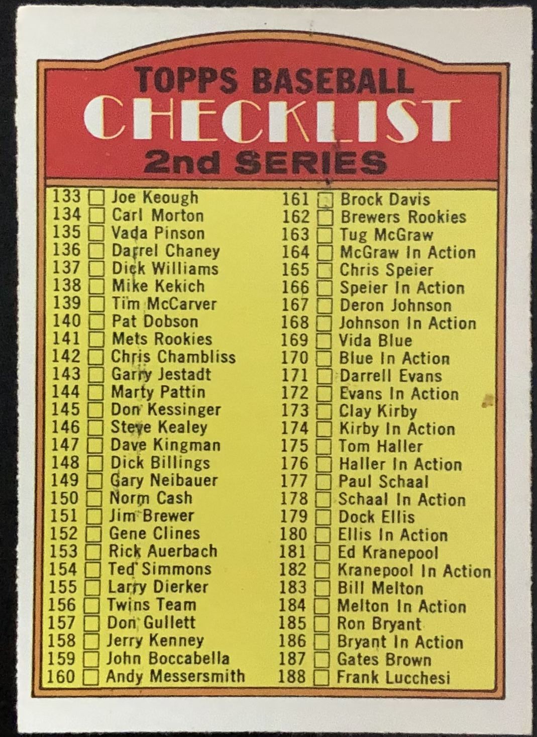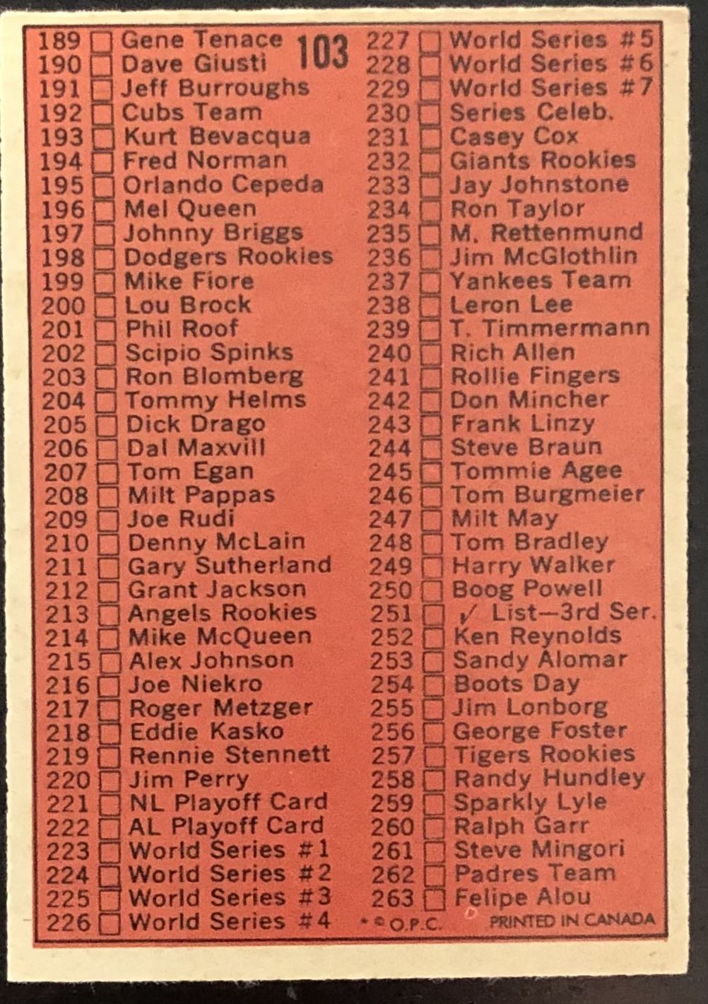 Lot 966 1972 O-PEE-CHEE 2nd SERIES CHECKLIST