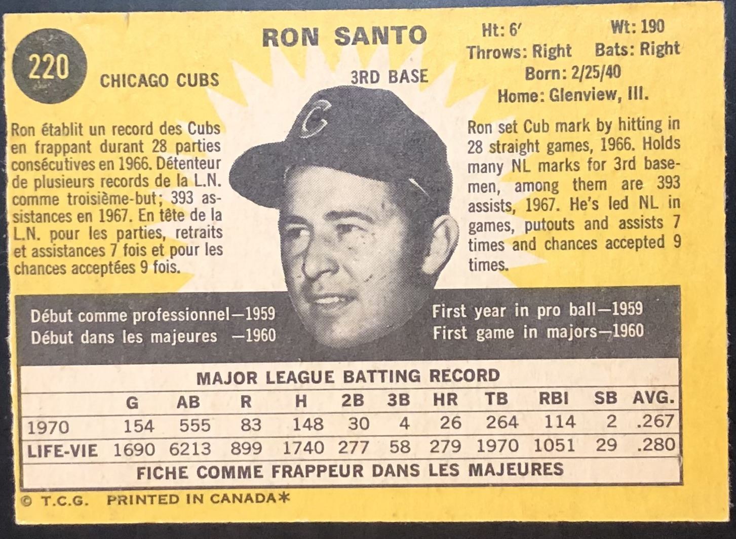 Card #220 MLB, baseball, vintage, OPC, hall of fame
