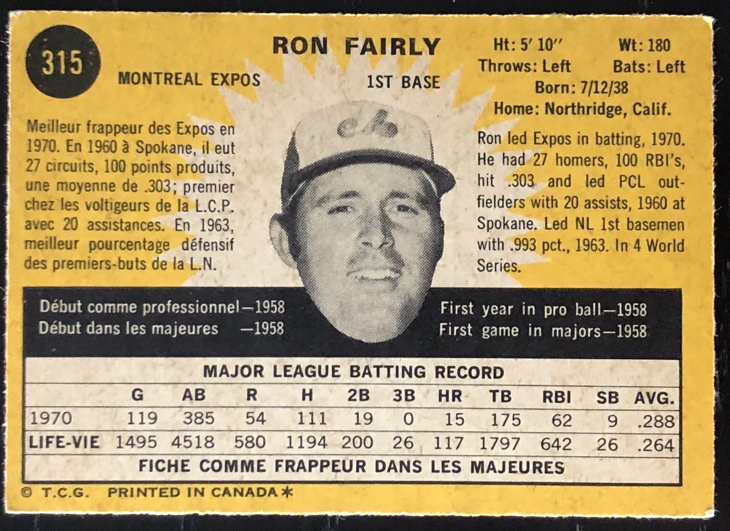 Lot 980 1971 O-PEE-CHEE RON FAIRLY