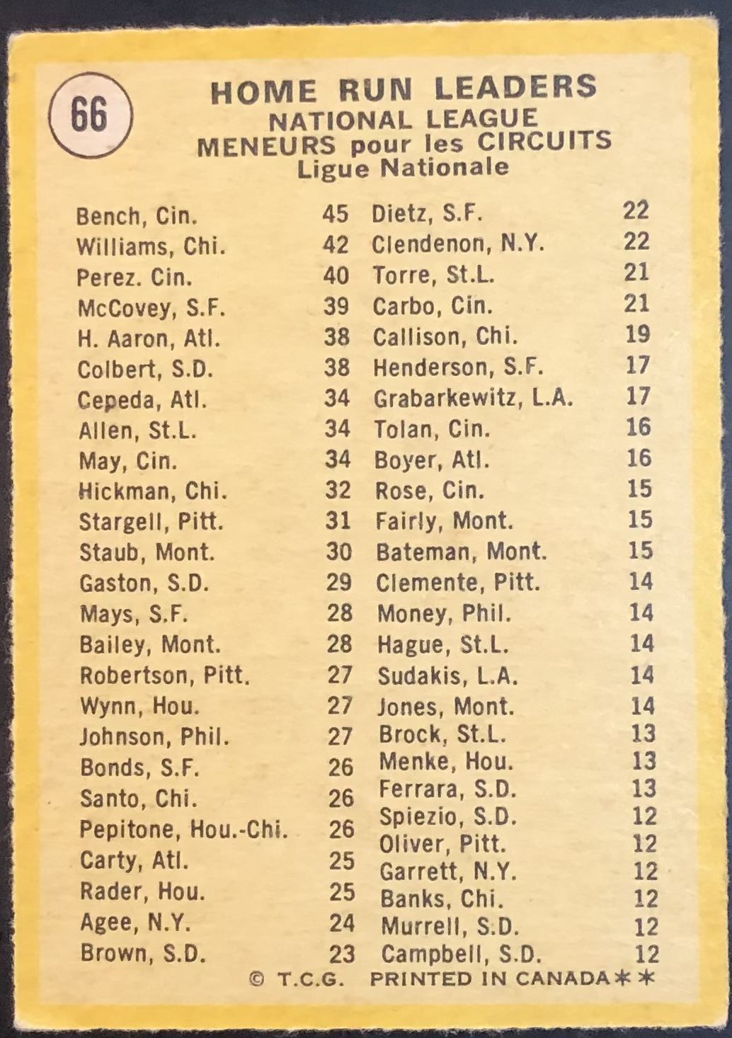 Card #66 MLB, baseball, vintage, OPC, hall of fame
