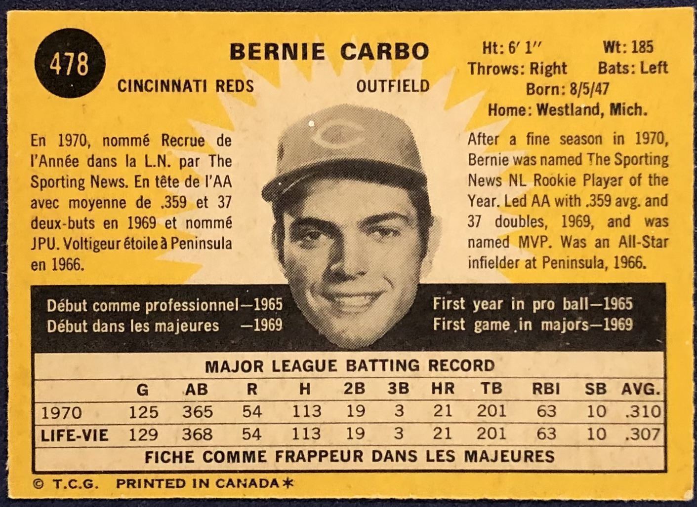 Lot 986 1971 O-PEE-CHEE BERNIE CARBO ROOKIE CARD