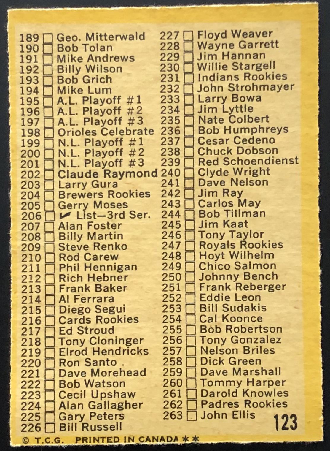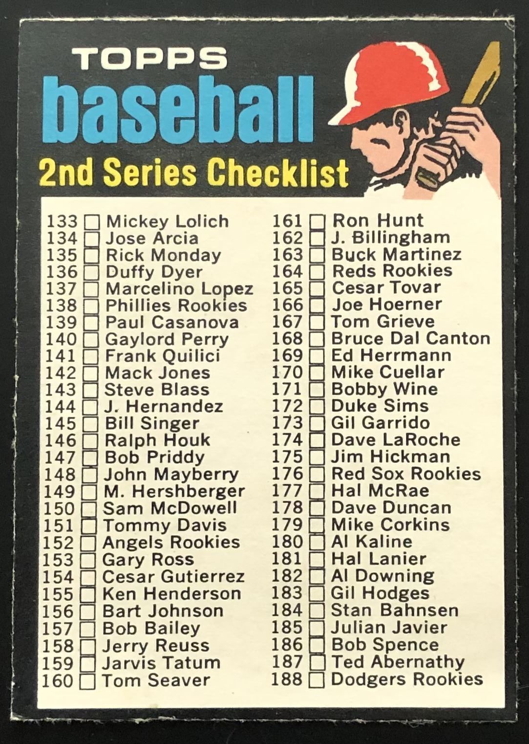 Lot 989 1971 O-PEE-CHEE 2nd SERIES CHECKLIST