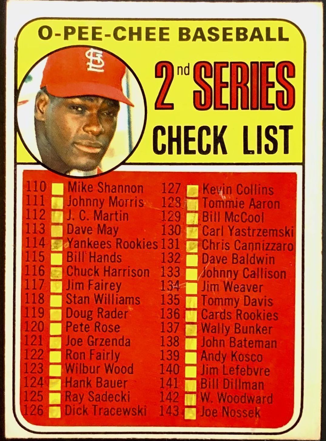 Lot 1003 1969 O-PEE-CHEE 2nd SERIES CHECKLIST - BOB GIBSON (HOF)