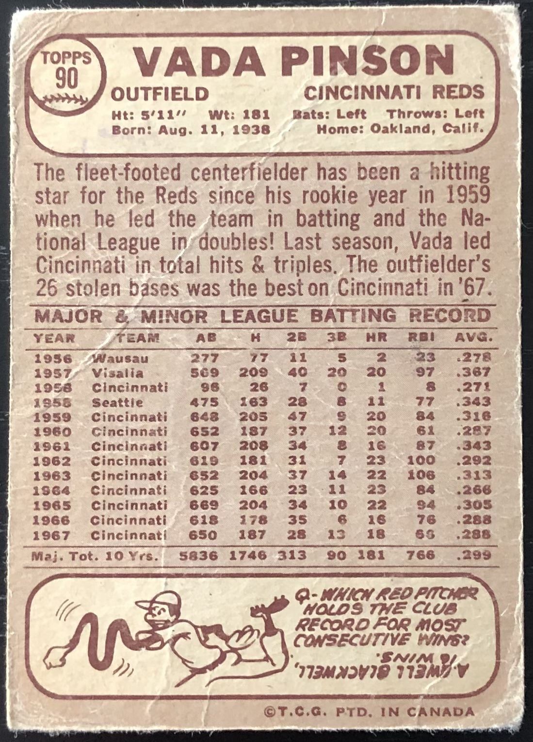Lot 1004 1968 O-PEE-CHEE VADA PINSON