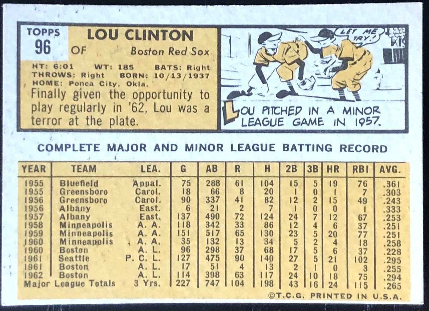 Lot 1025 1963 TOPPS LOU CLINTON