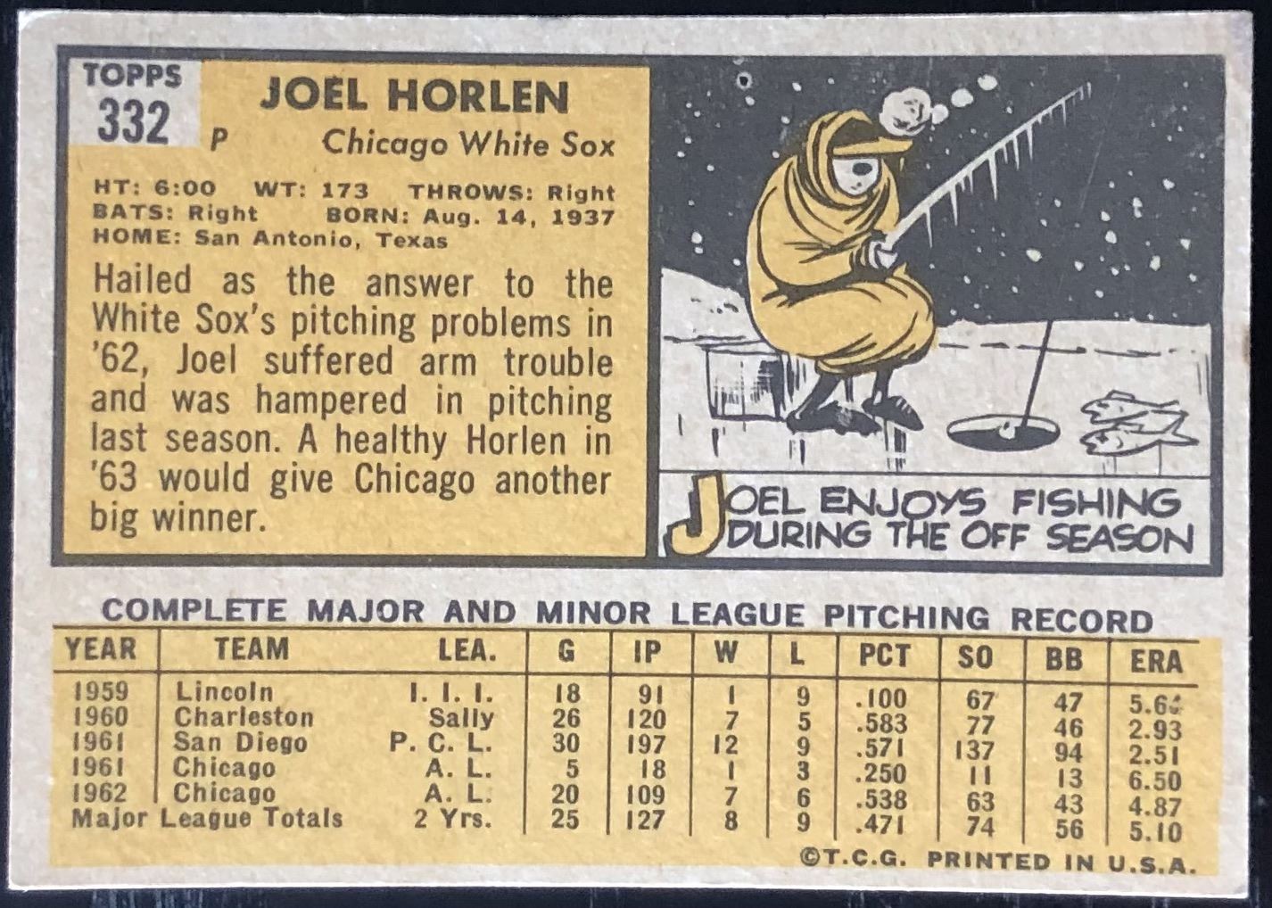 Lot 1026 1963 TOPPS JOEL HORLEN ROOKIE CARD