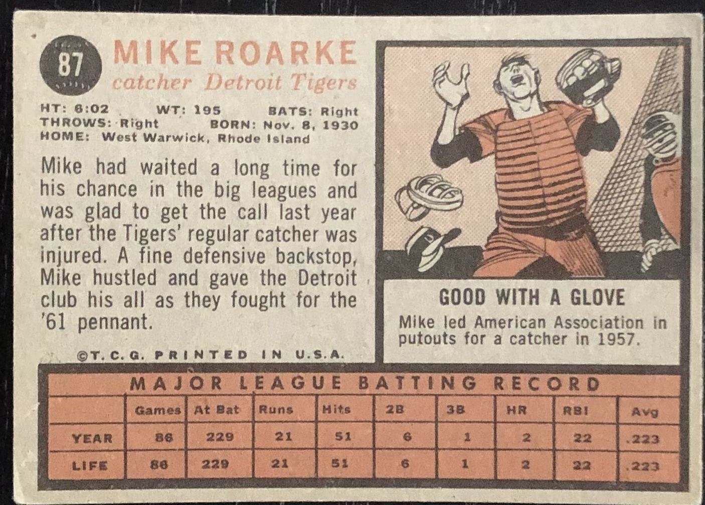 Lot 1036 1962 TOPPS MIKE ROARKE ROOKIE CARD